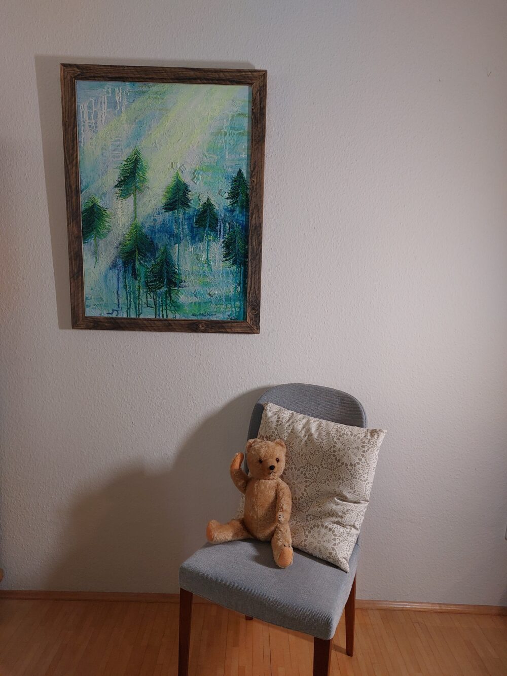 Mit dieser Acrylmalerei habe ich die tiefe Verbindung zwischen Mensch und Wald eingefangen. Die expressiven Farbverläufe und lebendigen Grüntöne vermitteln die Energie und Ruhe, die ein Wald ausstrahlt. Dieses Werk bringt Naturkraft und innere Balance zu dir nach Hause, lädt ein zum Eintauchen und Auftanken in einer hektischen Welt.